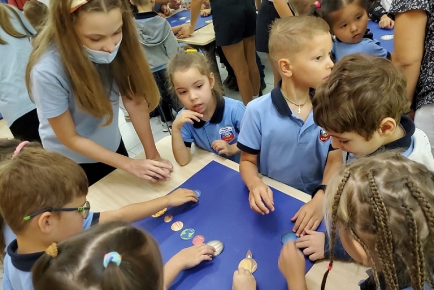 Дошколята KG1 и KG2 с интересом совершили интерактивное путешествие по Солнечной системе, организованное командой волонтёров из 8А и 9А кл.
