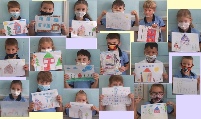 На практико-ориентированной математике первоклассники учились соотносить геометрические фигуры с предметами похожей формы из жизни под руководством В.О. Турдиевой, представив своё творчество в рисунках.