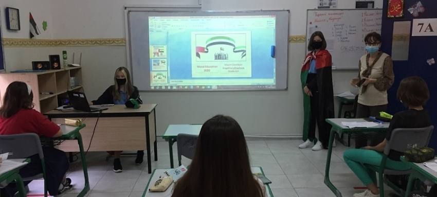 03 ноября учащиеся 9А класса Дэвидсон Максим и Лихачёва Ангелина представили интересные факты по теме “The UAE Flag Day” по страноведению для ребят 7А под руководством С.А. Масимовой.