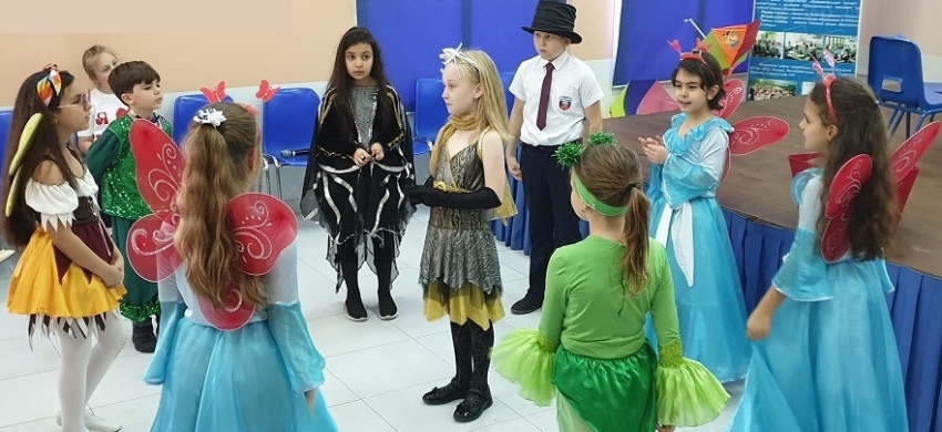 С целью раскрытия творческого потенциала и развития интереса к театрально – игровой деятельности 05 марта учащиеся 2А класса представили своим мамам и ребятам из KG1, KG2 и 3А кл. театральную постановку по мотивам сказки «Муха-Цокотуха» под руководством В.О. Провкиной.