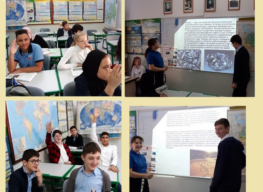 19 января ученица 7А класса Иванова Екатерина по собственной инициативе провела для своих одноклассников урок по географии сцелью систематизации знаний учащихся по теме «Африка» и знакомства с Нигерией (особенностями географического положения, полезными ископаемыми, растительным и животным миром).