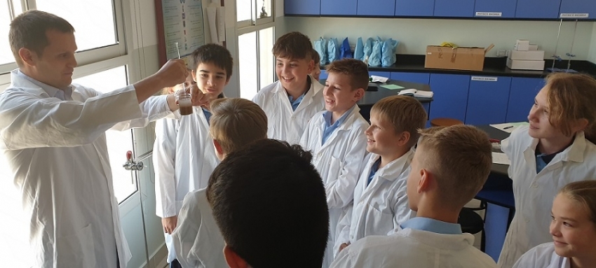 13 октября в 6А классе с целью определения понятий «чистое вещество» и «смесь веществ» прошла лабораторная работа по химии «Методы разделения смесей» под руководством К.П. Руденко. Ребята познакомились со способами разделения смесей, а учащиеся Марьям Абдурахманова и Виктор Сорокин выступили в роли переводчиков основных химических терминов на английском языке в процессе выполнения опытов.