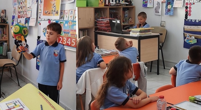 Первоклассники Иванов Никита и Пелюкпашиди Михаил презентовали дошколятам проекты по окружающему миру «Насекомые» и «Робототехника», продемонстрировав творческие, вербальные и исследовательские навыки.