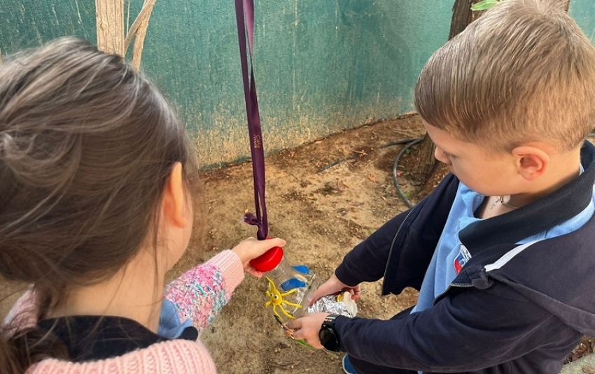 С целью воспитания экологической культуры и заботливого отношения к птицам первоклассники смастерили и развесили кормушки в школьном дворе.