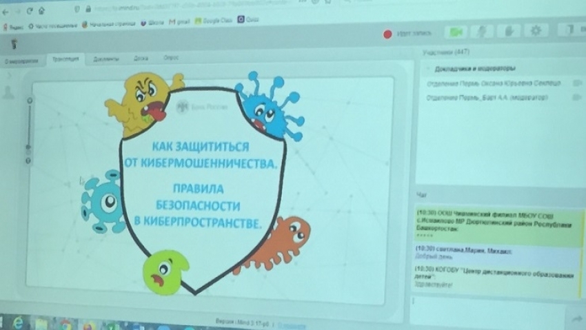 05 ноября учащиеся 9 – 11 классов приняли участие в онлайн семинаре «Как защититься от кибермошенничества?», организованного Банком России, в рамках образовательного проекта России по финансовой грамотности.
