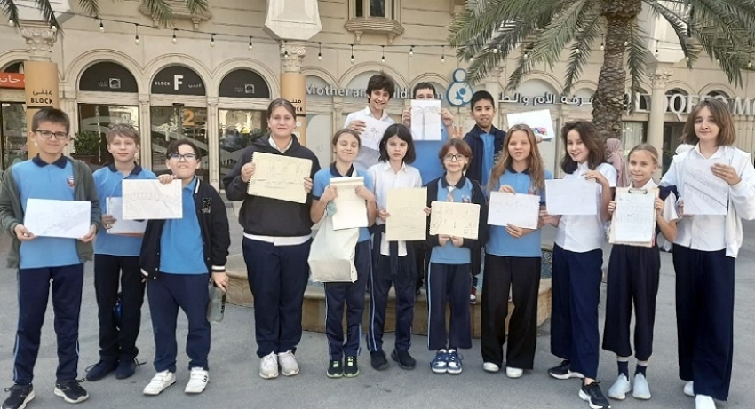 Пятиклассники выполнили графические рисунки «Пейзаж с натуры» на канале Аль Касба в г. Шардже.